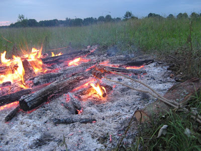 After visiting my uncle in Paluküla and one of my first cousins in nearby Kädva, we returned to Lalli just in time for the traditional village bonfire celebrating the shortest night of the year, The bonfire was held on their traditional bonfire site - Sonni hill. Not the most dramatic location, but extremely peaceful and beautiful nevertheless. The party began around 9pm, and there were 14 people in total, aged 9 to 90, with couple of dogs to boot. Here's a picture taken from the bonfire site from 9.30 pm, and it's still rather light: